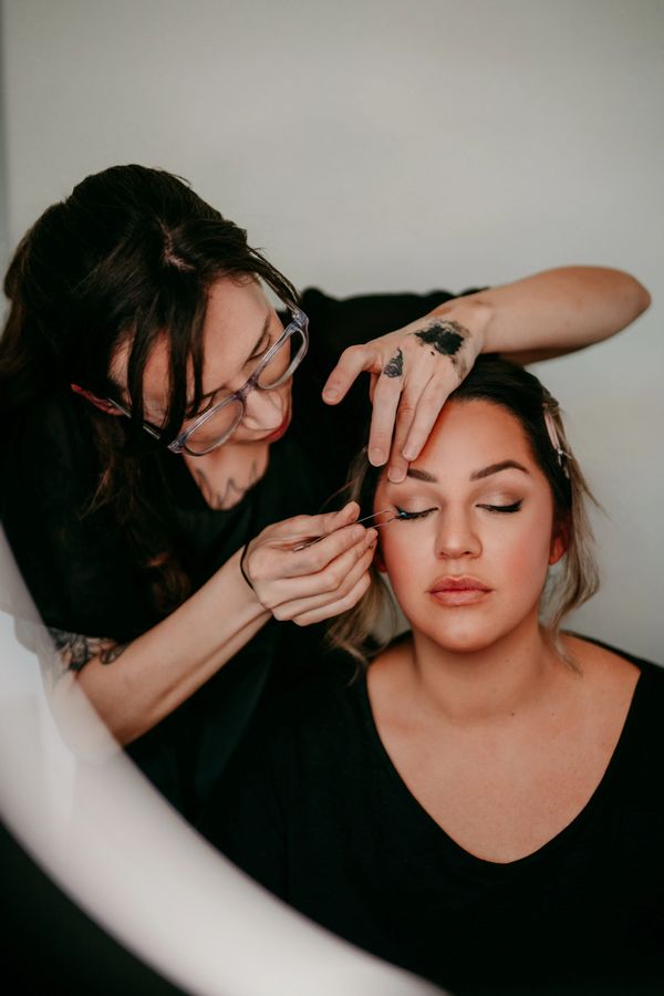 Professional newborn photoshoot makeup artist delivering flawless, gentle makeup application. Photo by Tiny Dreamers Studio Tinydreamersstudio.com